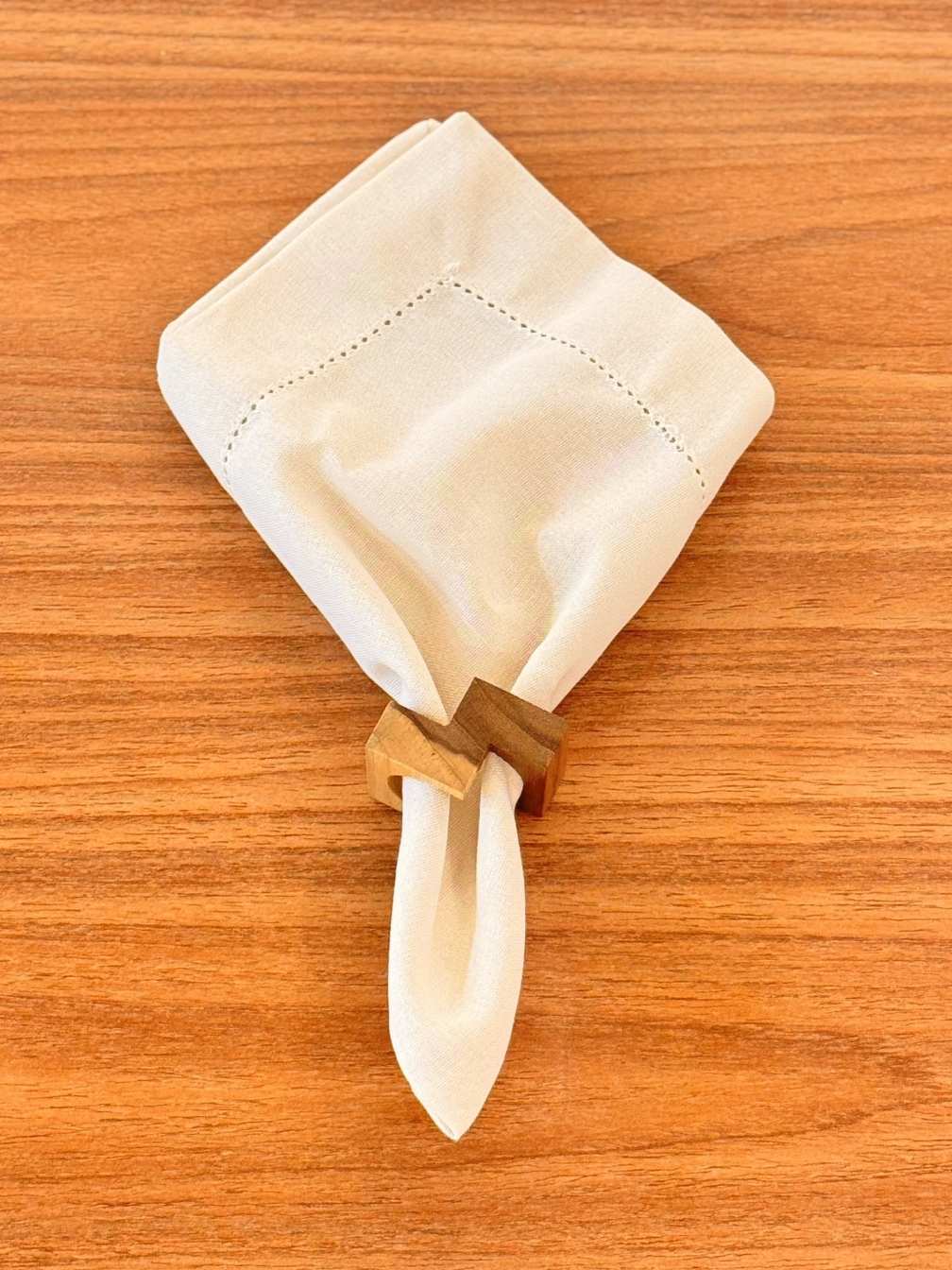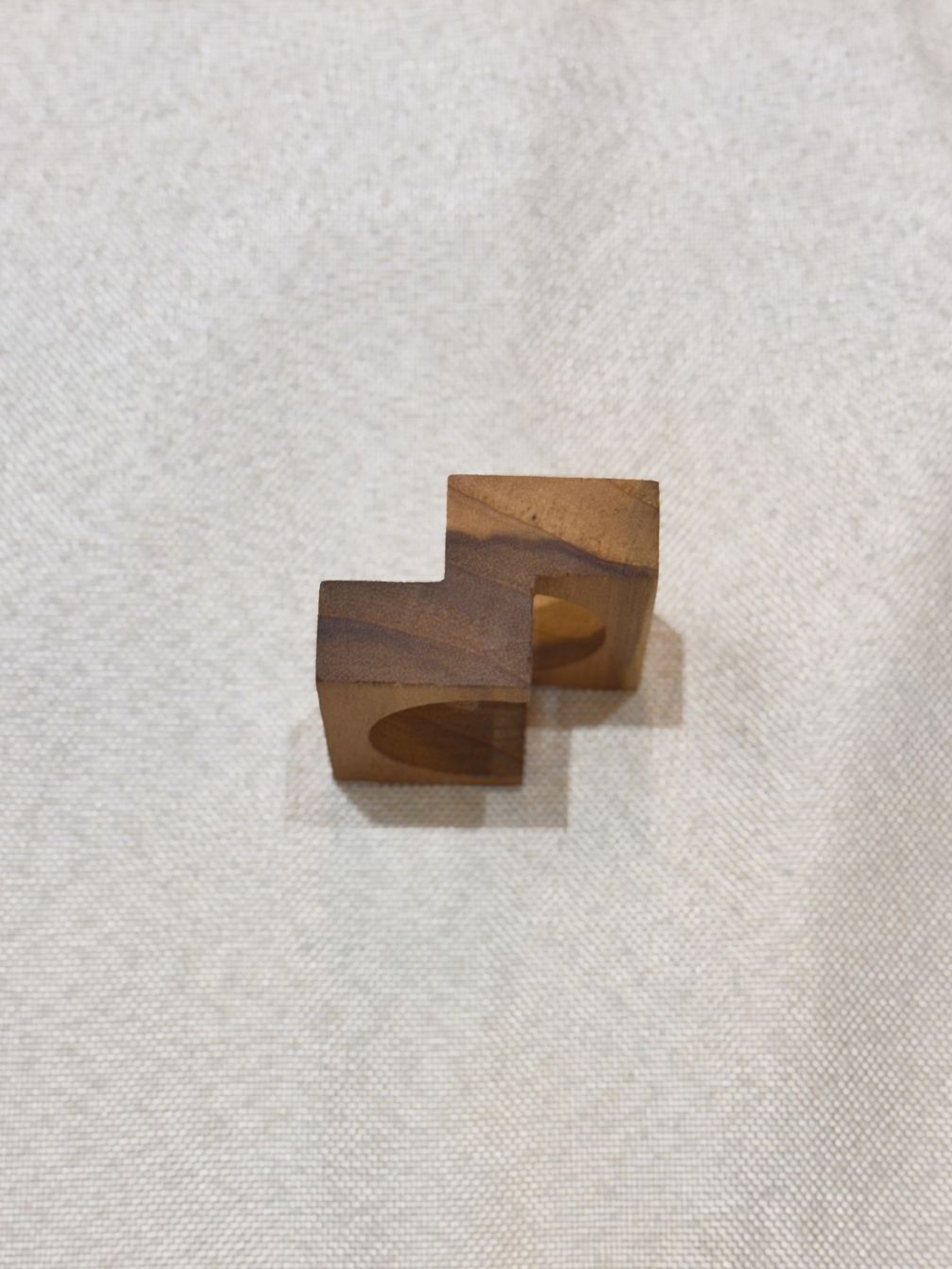 O Anel Duetto em madeira é o detalhe que finaliza a composição com equilíbrio e