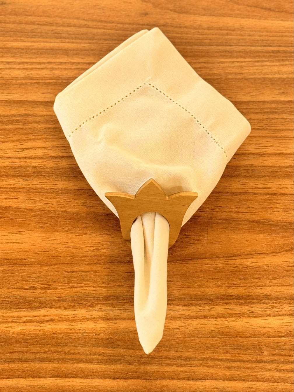 O Anel Duetto em madeira é o detalhe que finaliza a composição com equilíbrio e