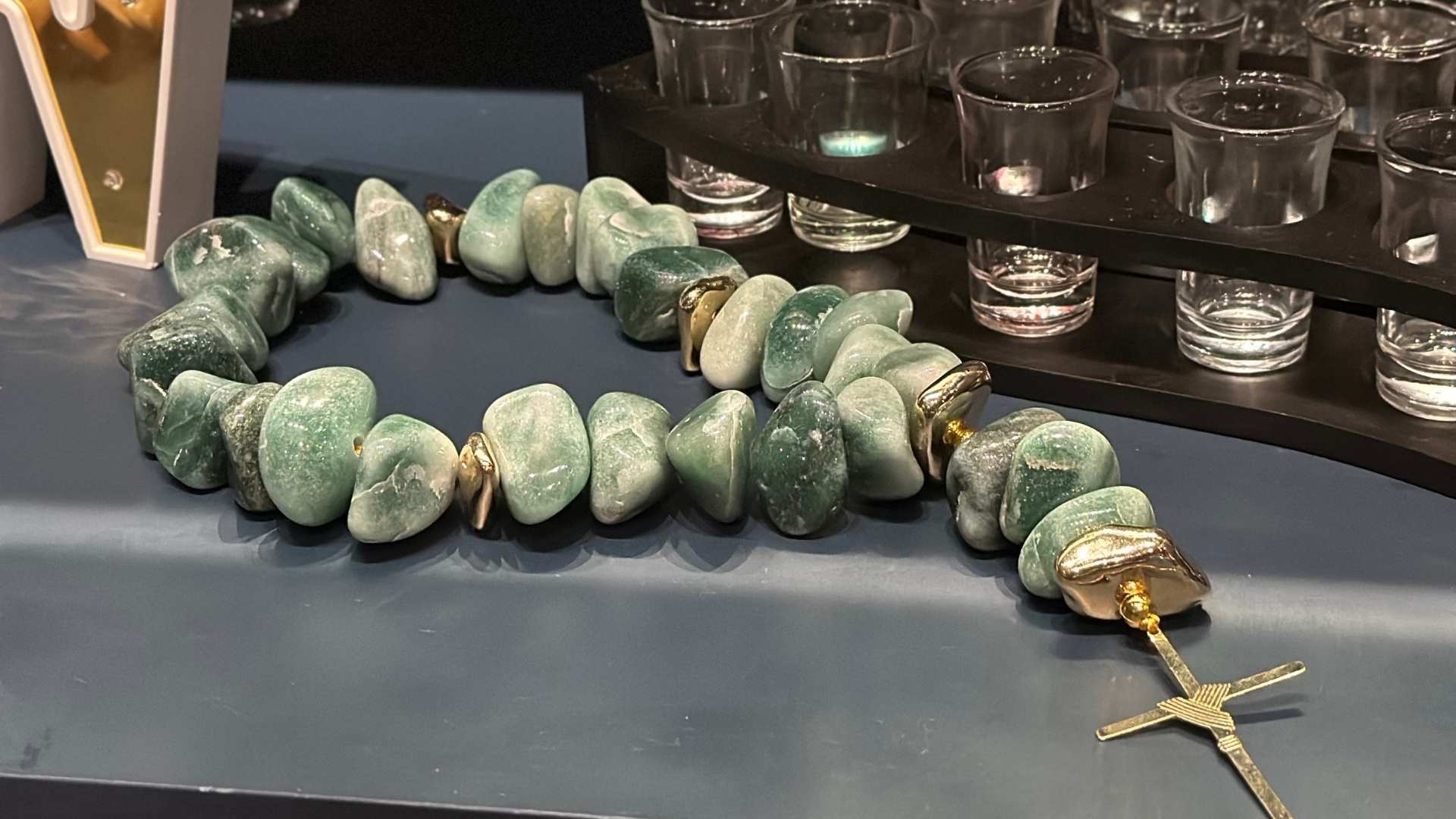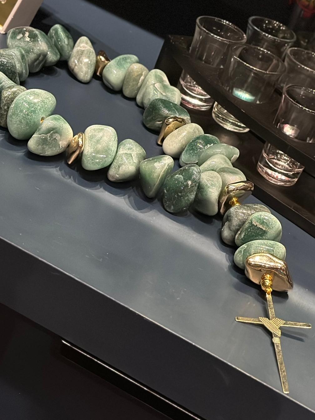 CRUCIFIXO QUARTZO VERDE – COLAR
