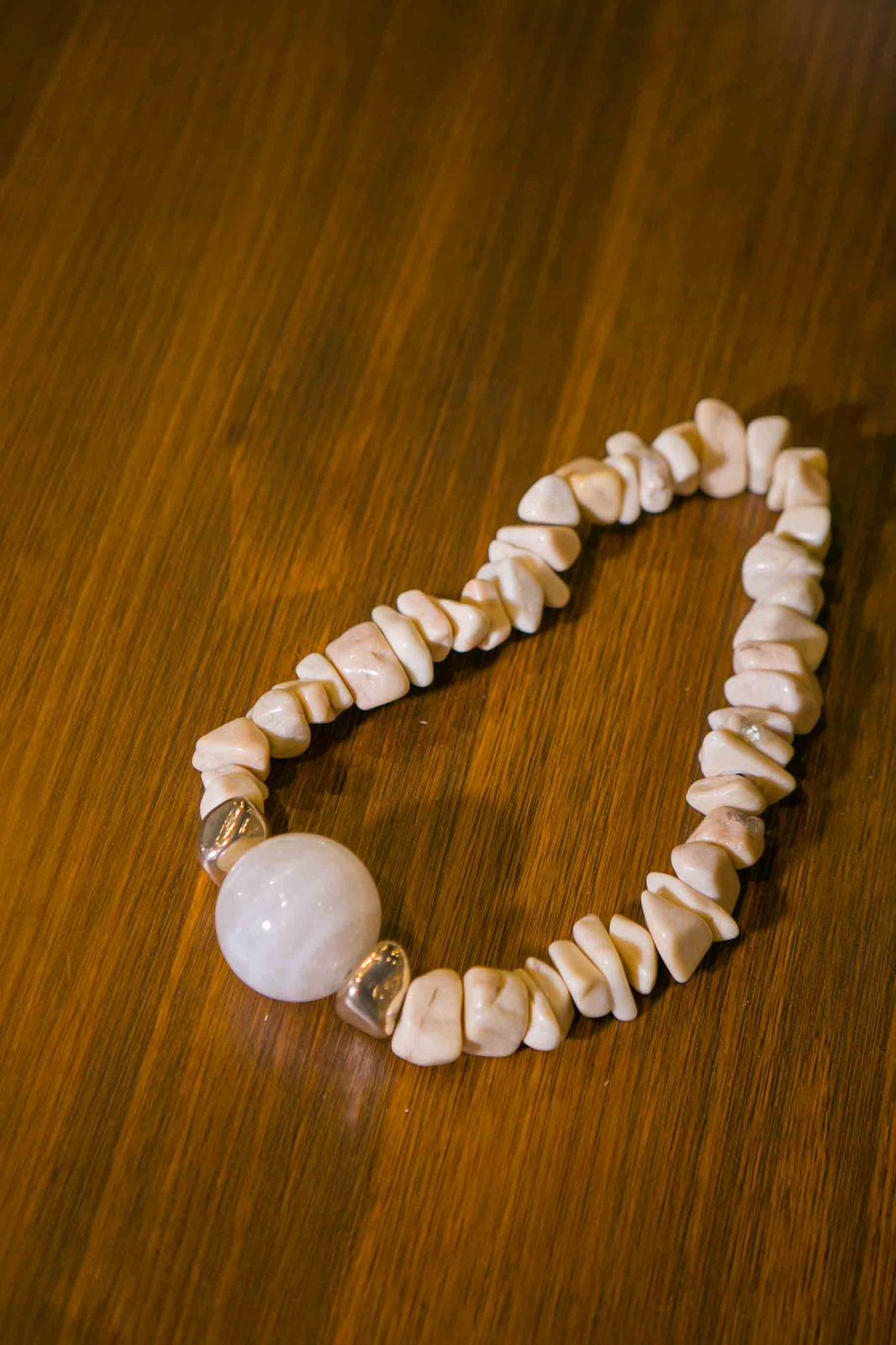 Colar de mesa composto com esfera, rolada banhada e feldspato.